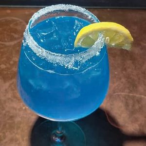 Blue Curacao, Simple Syrup, Lemon Juice, and Wycliff, finished with a lemon garnish
