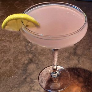 Ronrico Rum, lemon juice, blueberry lemon simple syrup. Garnished with a lemon & blueberry on a pick.